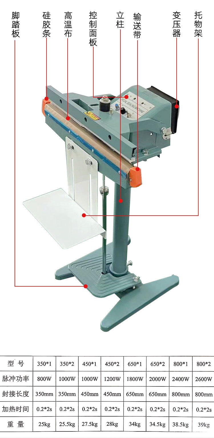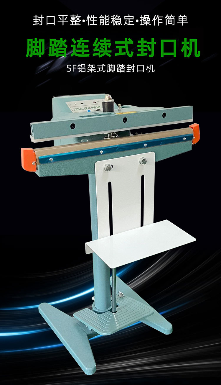 • 普通封口機:結構設計相對較為簡單,主要側重于手動操作部件與封口執行部件的連接和配合。其外形和尺寸可能因不同的類型和應用場景而有所差異,但一般不會特別突出腳踏操作的相關結構設計。