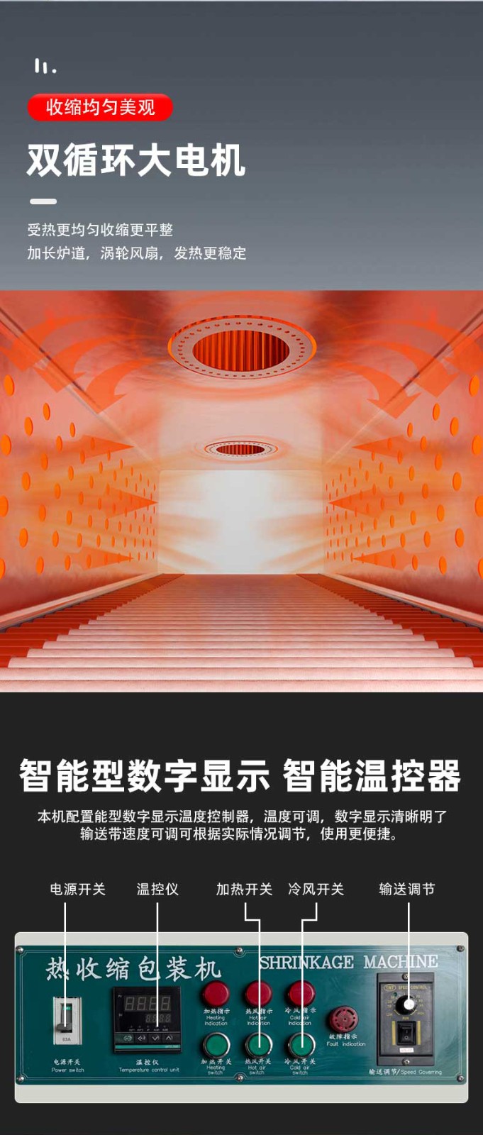 • 適用范圍廣:可適用于各種形狀和尺寸的產(chǎn)品包裝,如瓶罐類(lèi)、盒裝類(lèi)、桶裝類(lèi)等,同時(shí)也能適應(yīng)不同材質(zhì)的熱收縮膜,如 PE、POF、PVC 等6