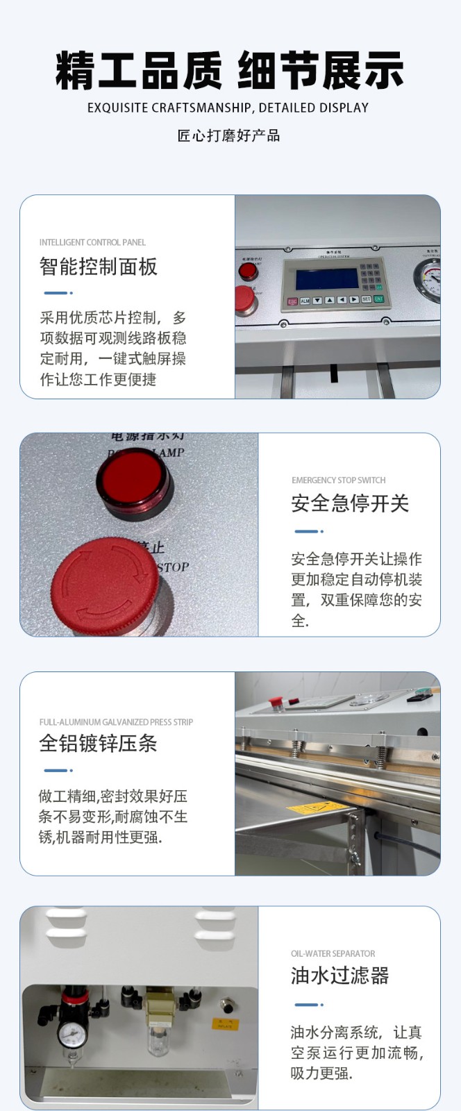 - 操作門檻低:無需頻繁調(diào)整腔體大小,只需定位袋口即可啟動,部分機(jī)型配備腳踏開關(guān),單人即可高效操作。